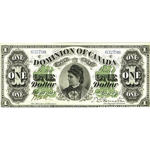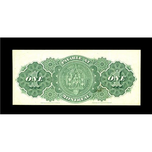 <B>DC-8e $1 1878</B></I><BR>This was the second variety used for the 1878 issue, with the scalloped border being replaced with a plain border to accommodate a slight design change to discourage counterfeiting. This piece, payable at Montreal, grades a bright <B>Extremely Fine,</B></I> with the bottom margin trimmed just a bit close.<BR><I>From The Halton Lake Collection</B></I>