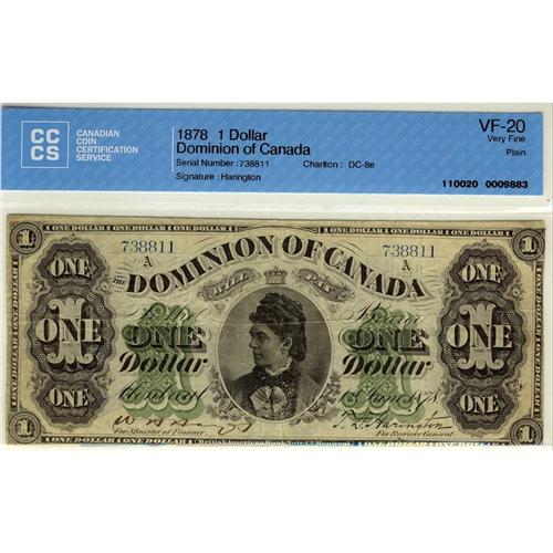 DC-8e 1878 $1 Plain CCCS VF20, a nice bright example