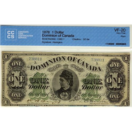 DC-8e 1878 $1 Plain CCCS VF20, a nice bright example