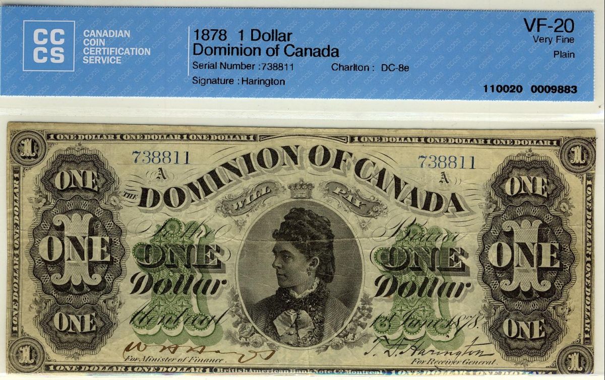 DC-8e 1878 $1 Plain CCCS VF20, a nice bright example