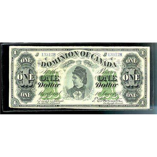 DC-8e-iii (M) 1878 $1 C133128. A choice about EF . Original note with bright colours. Very scarce and underrated variety!