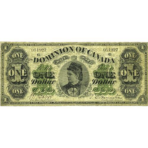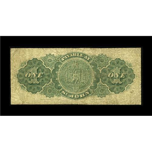 <B>DC-8g $1 1878</B></I><BR>This payable at St. John example is a very scarce note in any grade, and is unpriced in Charlton above the Very Fine level. <B>Very Good+,</B></I> with no flaws but even circulation.<BR><I>From The Halton Lake Collection</B></I>
