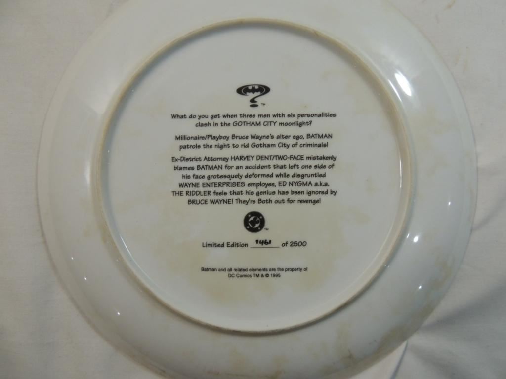 COLLECTORS PLATE DECORATIVE PLATE GOTHAM CITY HARVEY DENT TWOFACE BATMAN WAYNE ENTERPRISES ED NYGMA THE RIDDLER BRUCE WAYNE. MOVIE BATMAN MEMORABILIA. AS SHOWN SEE PHOTO FOR MORE DETAILS.