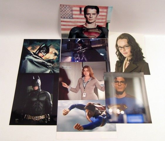 A beautiful color set of 8X10's , including Henry Cavill (Man of Steel), Amy Adams (Lois Lane), and Christian Bale (Batman). Nine full color photos in all.