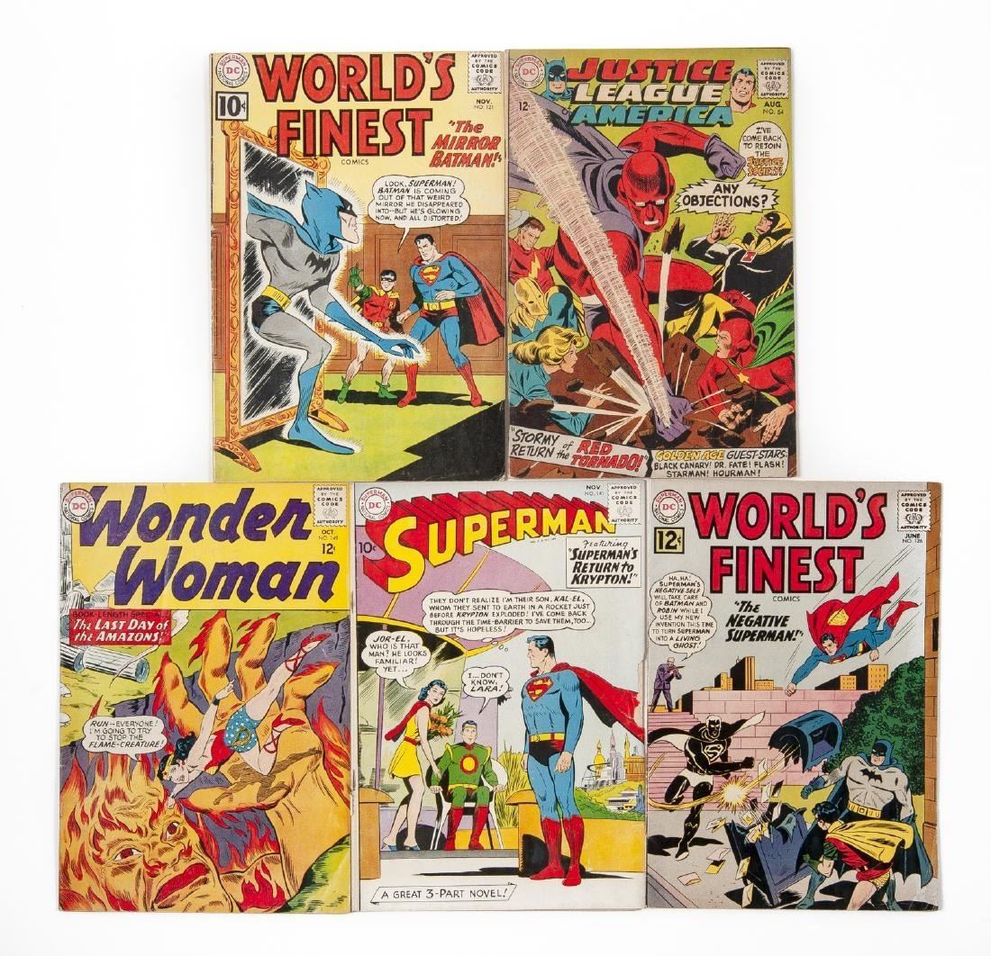 Five DC Comics comic books. Silver Age. Issues include Justice League America #64 with Red Tornado, #121, #126, #141, and #149.