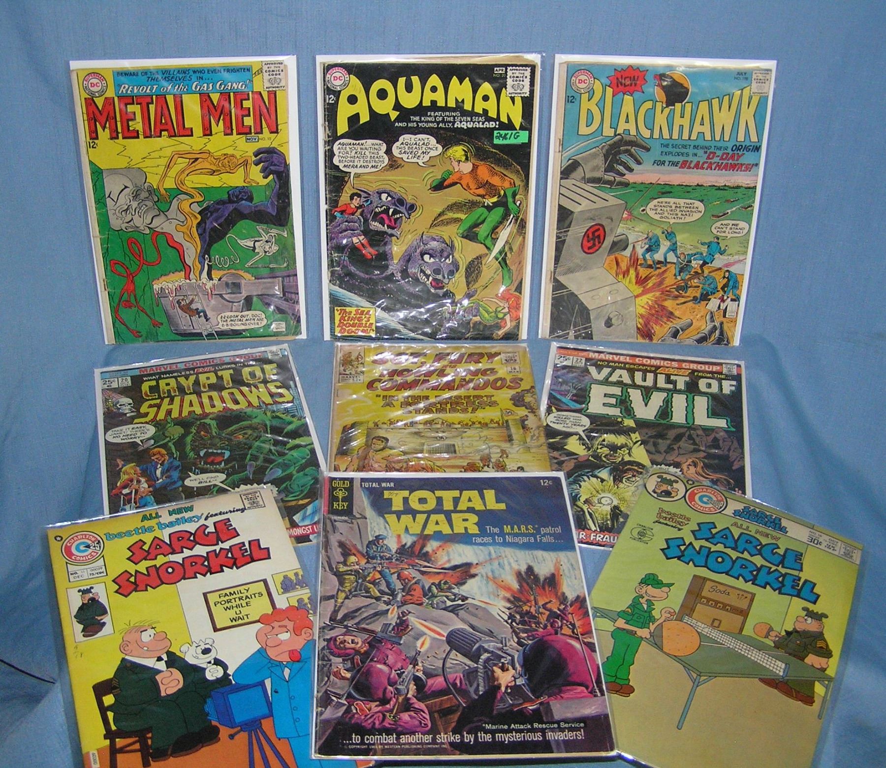 Collection of DC, Marvel, Charlton and Gold Key comic books featuring Aquaman, Metalmen, Black Hawk, Sgt Fury, Total War and more est. value $200.00-$225.00