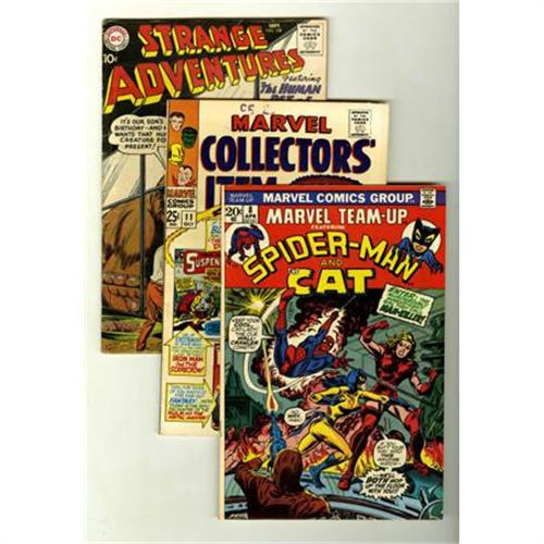 <B>DC/Marvel Silver Age Group (DC/Marvel, 1960s) Condition: Average VG.</B></I> Includes <B>Marvel Team-Up </B></I>#8 (featuring the Cat); <B>Marvel Collector's Item Classics </B></I>#11; <B>Strange Adventures </B></I>#108 (gorilla cover), 113, 122, 127, and 133; <B>King Leonardo and His Short Subjects </B></I>#1; <B>World's Finest </B></I>#110; <B>Detective Comics </B></I>#383; <B>Brave and the Bold </B></I>#43 (Hawkman, more detailed origin, Joe Kubert art); <B>Journey Into Mystery </B></I>#120; <B>Amazing Spider-Man </B></I>#91; <B>Atom </B></I>#17 and 18 (2 copies); and <B>Josie </B></I>#15. Approximate Overstreet value for group = $350.<BR><BR><b>Shipping:</b> Comics - Unslabbed (<a target="_blank" href="http://www.heritageauctions.com/common/shipping.php">view shipping information</a>)