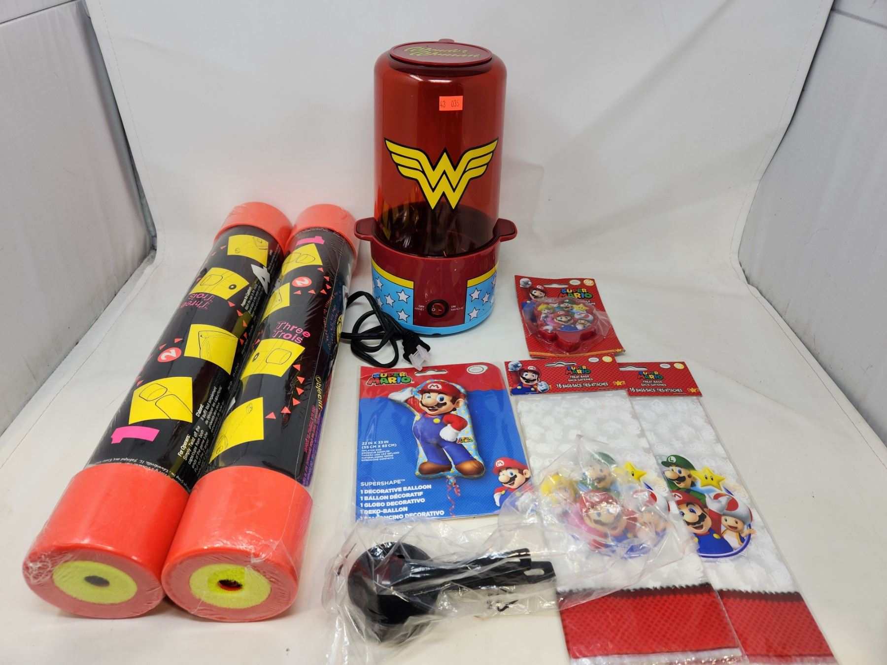 DC Wonder Woman Popcorn Maker, Super Mario Party Supplies & Disc Throwing Game
