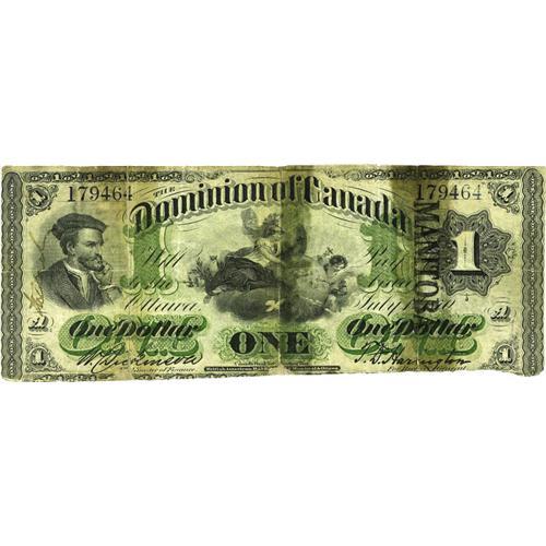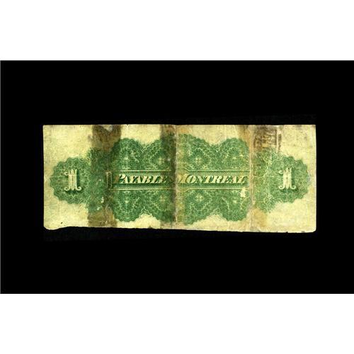 <B>DC-2-a-ii $1 1870</B></I><BR>This is one of the classic Canadian rarities, and one which invariably comes only in very low grade. It is priced only in "Good" in the new edition of Charlton, where it carries the purely nominal value of $5,000. This piece grades <B>Very Good</B></I> or better in appearance, but has been severed in three and extensively repaired, with a couple of small skins still visible at the repairs. Any estimate here is purely guesswork, as this note is so seldom available, but a reasonable range appears to be...<BR><I>From The Halton Lake Collection</B></I>