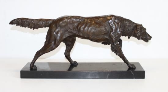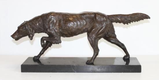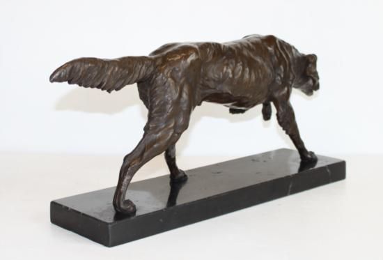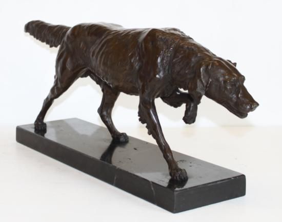 DDCD043 Wonderful Pointer Dog Bronze Sculpture 21 L x 5 W x 9 H This bronze sculpture was produced using the Lost Wax casting method. The Lost Wax Cast method is the most precise metal casting technique in existence, ensuring exquisite detail of the original host model which is usually sculpted in clay or wax. This Lost Wax casting method is an extremely labor intensive and expensive process, but the end results produce a Heirloom Quality Masterpiece!