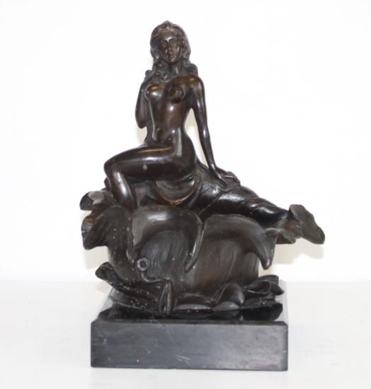 DDSM331 Alluring Mermaid Dish Bronze Sculpture12H x 9 W x 8  D 14 lbs This bronze sculpture was produced using the Lost Wax casting method. The Lost Wax Cast method is the most precise metal casting technique in existence, ensuring exquisite detail of the original host model which is usually sculpted in clay or wax. This Lost Wax  casting method is an extremely labor intensive and expensive process, but the end results produce a Heirloom Quality Masterpiece! .