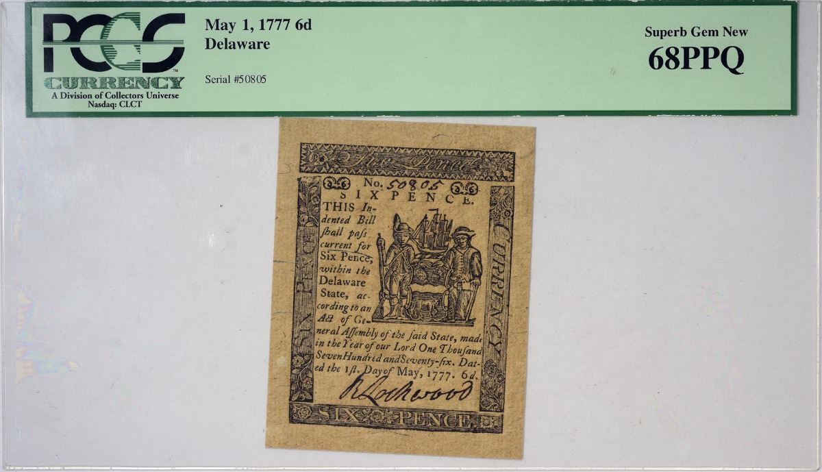 DE-83. May 1, 1777. 6 Pence Colonial Note. PCGS Superb Gem New 68 PPQ.