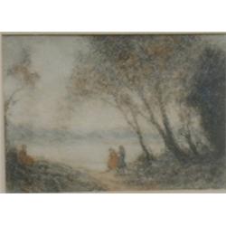 DE BELLE, Charles Ernest, A.R.C.A., 1873-1939. "Children by the Lake". Pastel, monogrammé. Pastel, monogrammed. 5 1/2" x 7 3/4" - 14cm x 19.6cm. $350/550