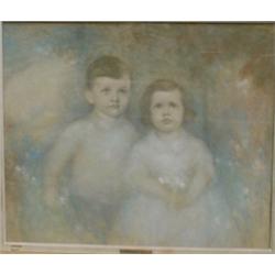 DE BELLE, Charles Ernest, A.R.C.A., 1873-1939. "Young Children in a Garden". Pastel, monogrammé. Pastel, monogrammed. 21" x 25 3/4" - 53.4cm x 65.4cm. $600/800