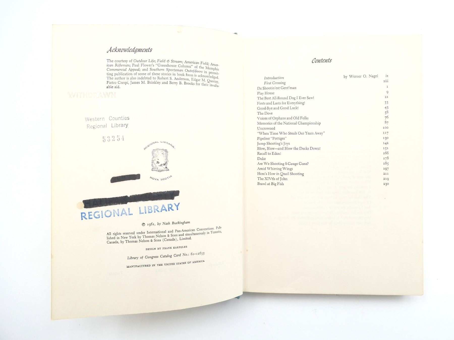 (1) BY NASH BUCKINGHAM, HARD COVER WITH DUST COVER, COPYRIGHT 1961. SEE PHOTOS.