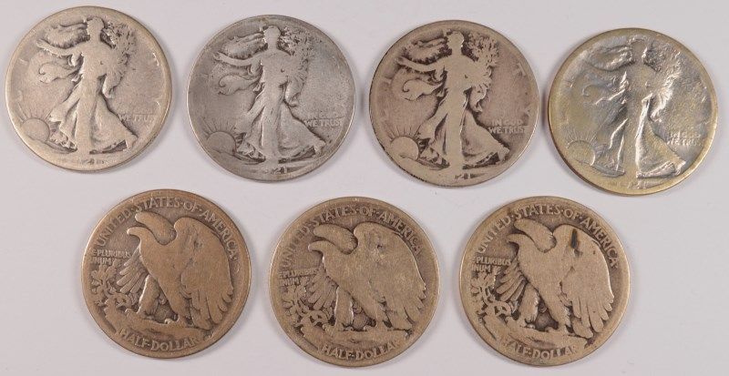 DEALER LOT: ( 7 ) PIECES 1921-S WALKING LIBERTY HALF DOLLARS, ALL NICE GOODS