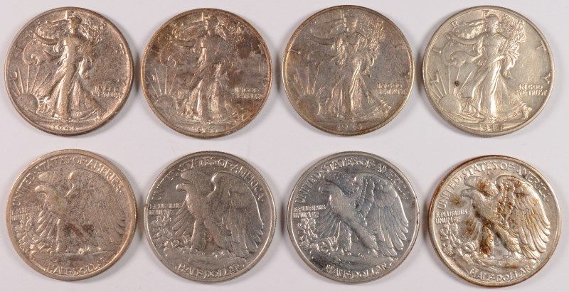 DEALER LOT OF ( 8 ) WALKING LIBERTY HALF DOLLARS,
