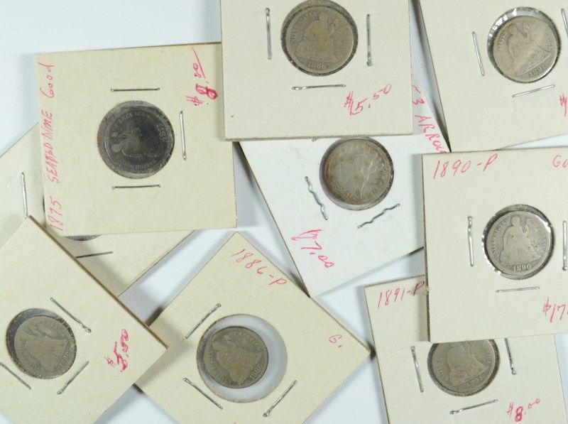 DEALER LOT OF ( 9 ) SEATED LIBERTY DIMES, ALL GRADE GOOD