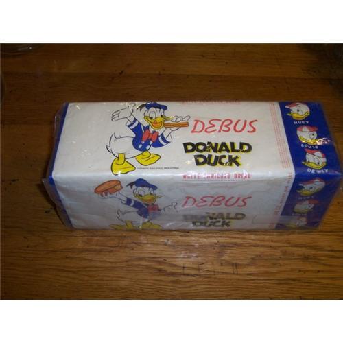 This is so cute.Someone took a vintage bread wrapper and re-formed it around I think a piece of foam.Looks great.This one is called DEBUS DONALD DUCK-Copyright Walt Disney Productions.Has Huey,Louie and Dewey down the side.So cute.