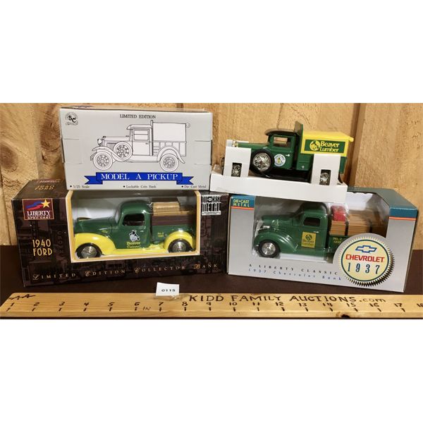 INCLUDES: 2X BANKS. 1X 1952 CHEVY PANEL VAN, INTERNATIONAL PICKUP, ETC