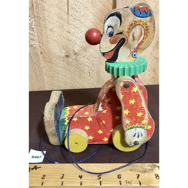 FISHER PRICE SQUEAKY THE CLOWN WOODEN PULL ALONG TOY