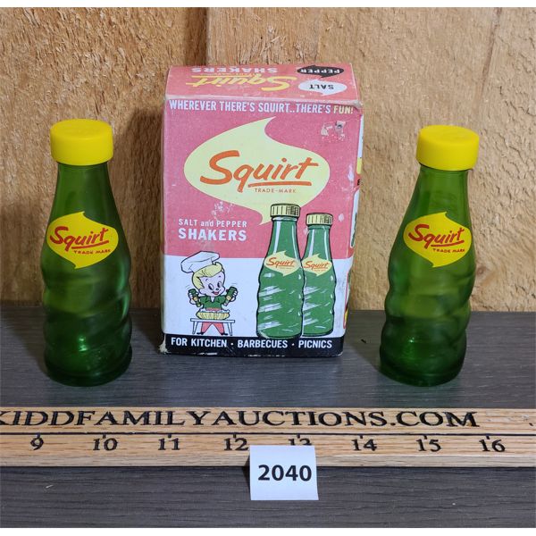 VINTAGE SQUIRT SALT AND PEPPER SHAKERS IN ORIGINAL BOX