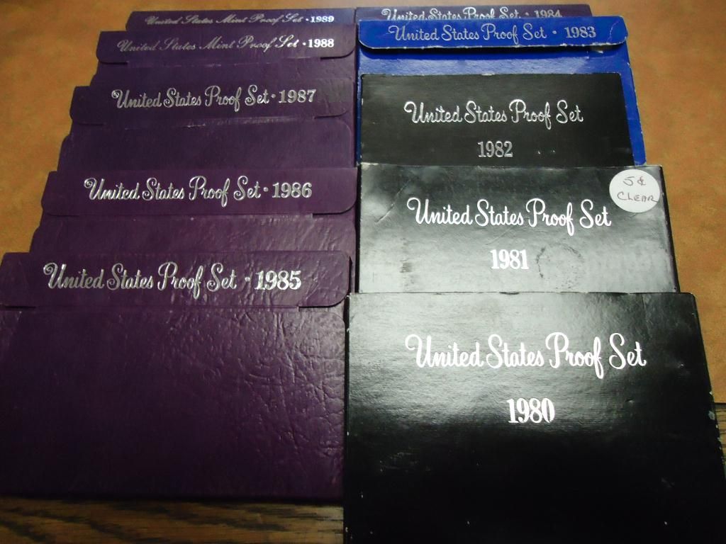 DECADE OF 1980'S US PROOF SETS (WITH BOXES)