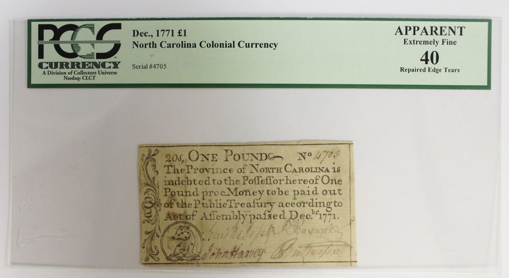 1 POUND, NORTH CAROLINA. PCGS XF 40. SO CHEAP FOR SO RARE! ESTIMATE: $275-$350