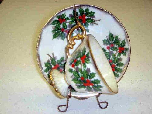 "DECEMBER HOLLY" VCAGCO CUP & SAUCER W/STAND