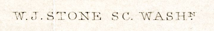 In all, 200 official parchment copies were struck from the Stone plate in 1823, with one extra struck for Stone himself. Each copy is identified as “ENGRAVED by W. I. STONE for the Dept of State, by order” in the upper left corner, followed by “of J. Q. ADAMS, Sect. of State July 4th 1824” in the upper right.