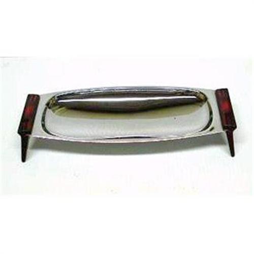THIS IS LOVELY ART DECO STYLE CHROME LONG SERVING DISH WITH CHERRY COLOR BAKELITE HANDLES AND LEGS, MADE BY WELL KNOWN "GLO-HILL" FOR GOURMATES OF CANADA,Measures about 11" x 4" and 1 3/4" high - EXCELLENT USED CONDITION - US Buyer to pay 7.00 for shipping plus insurance.THANKS.