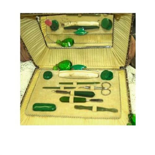 <tr><td>Title: DECO Celluloid GERMAN Bakelite VANITY set</td></tr>