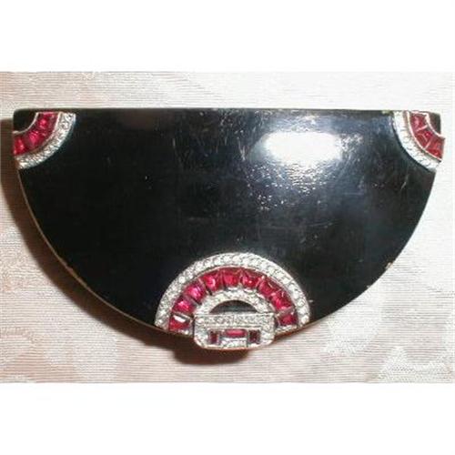 <tr><td>Title:DECO Compact RHINEstones BLACK Enamel VINTAGE</td></tr>