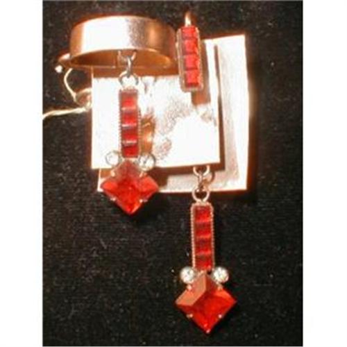 accented with square cut red crystals on a bar with hanging