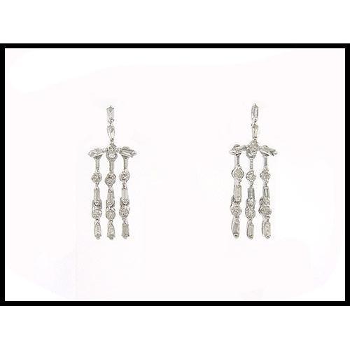18K White gold diamond earrings are the work of a modern master in the Art Deco style. 34 sparkling baguette and round diamonds move gracefully on the dangles when worn. They total about carats. The earrings measure 9mm (5/16") wide x 24mm (15/16") long. The $1,350.00 tag price represented very good value, but now to be yours for a small fraction of that amount.