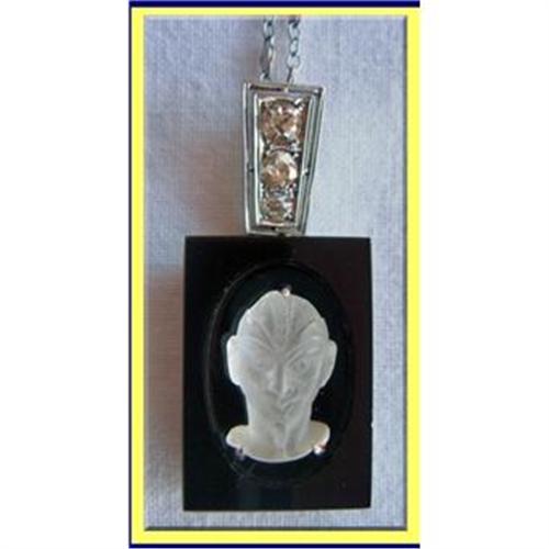 Antique Art Deco pendant necklace - diamond, carved moonstone, onyx, white gold. Made circa 1920's. <P>