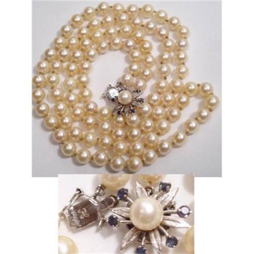 <tr><td>Title:DECO PEARL SAPPHiRE GOLD Opera necklace</td></tr>