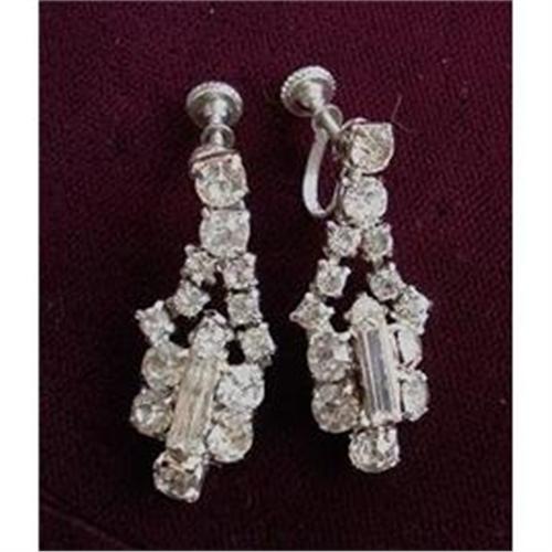 PRETTY RHINESTONE EARRINGS, THESE ARE SCREW-BACK STYLE, NOT SIGNED, BEAUTIFUL ART DECO STYLE,Excellent condition, Measuring about 1 1/2" long, US Buyer to pay 7.00 for shipping plus insurance.THANKS.