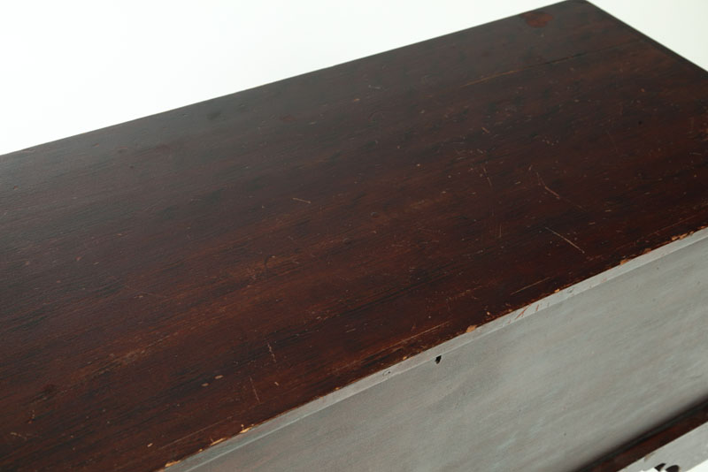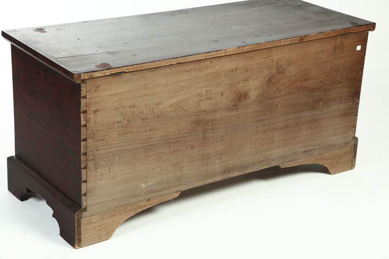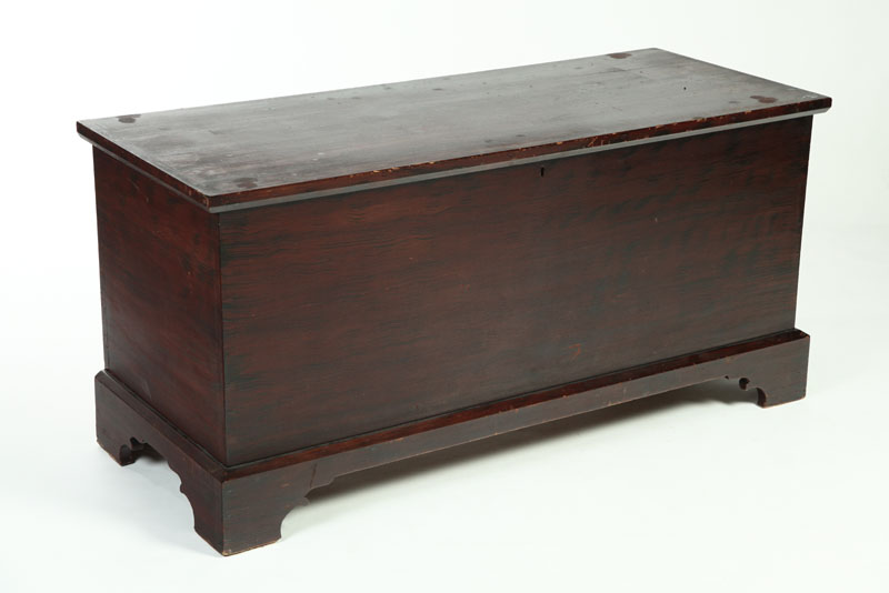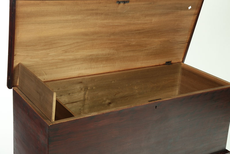 Pennsylvania, 19th century, poplar. Bracket feet, dovetailed case, molded edge lid and till with lid. Original red and black graining. Imperfections. 23 3/4"h. 49 3/4"w. 20 1/4"d.