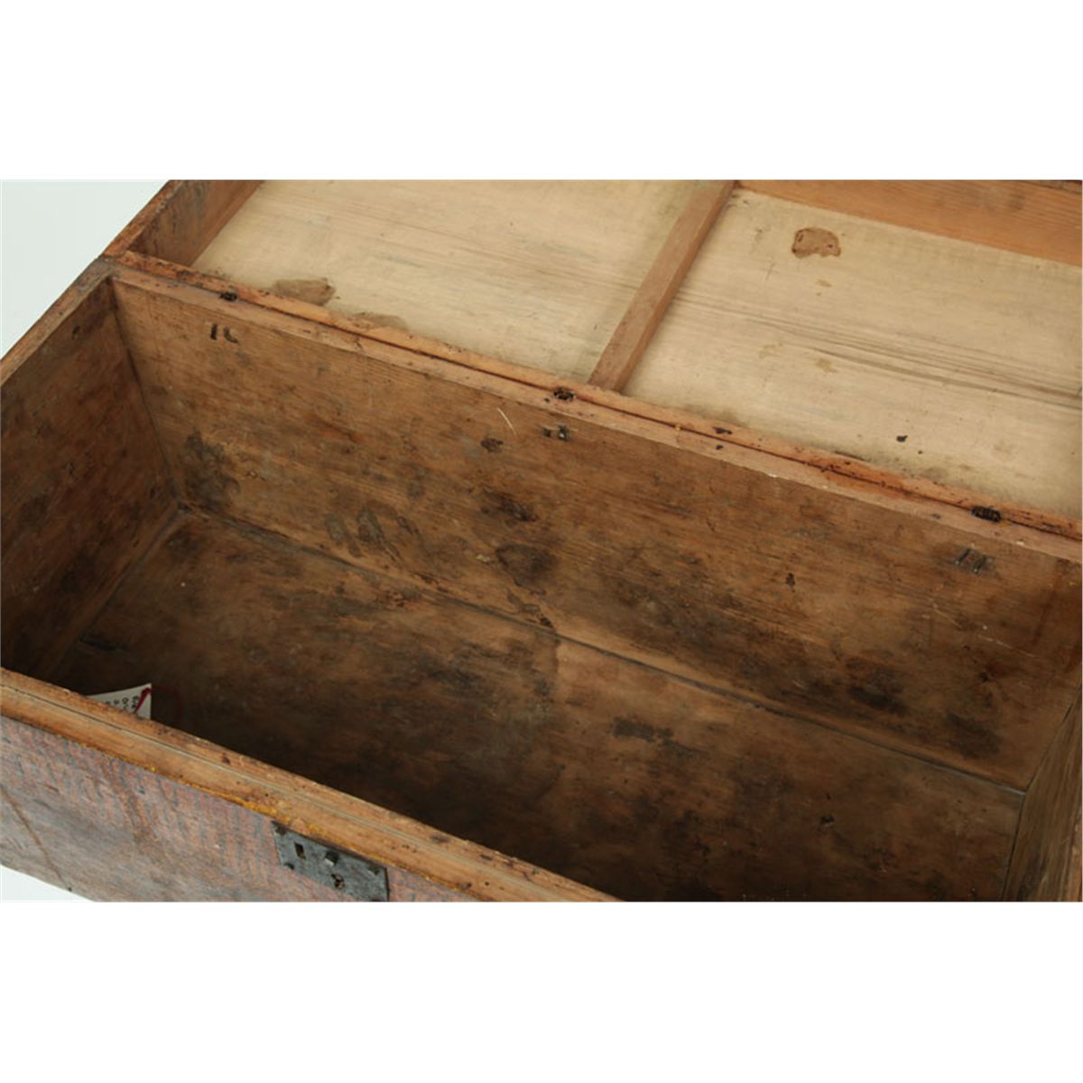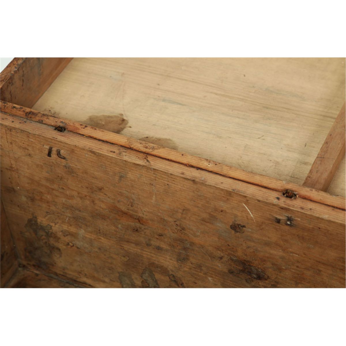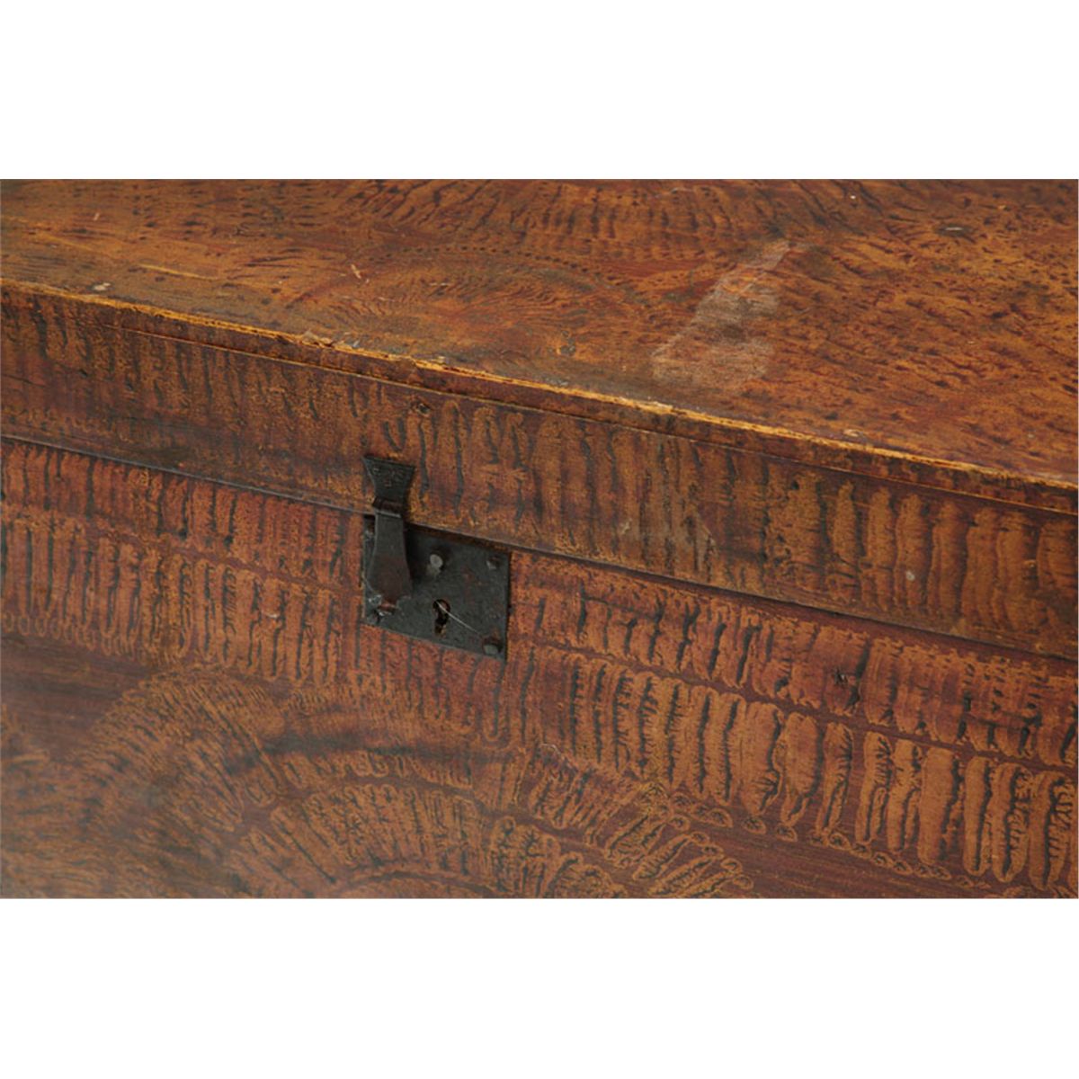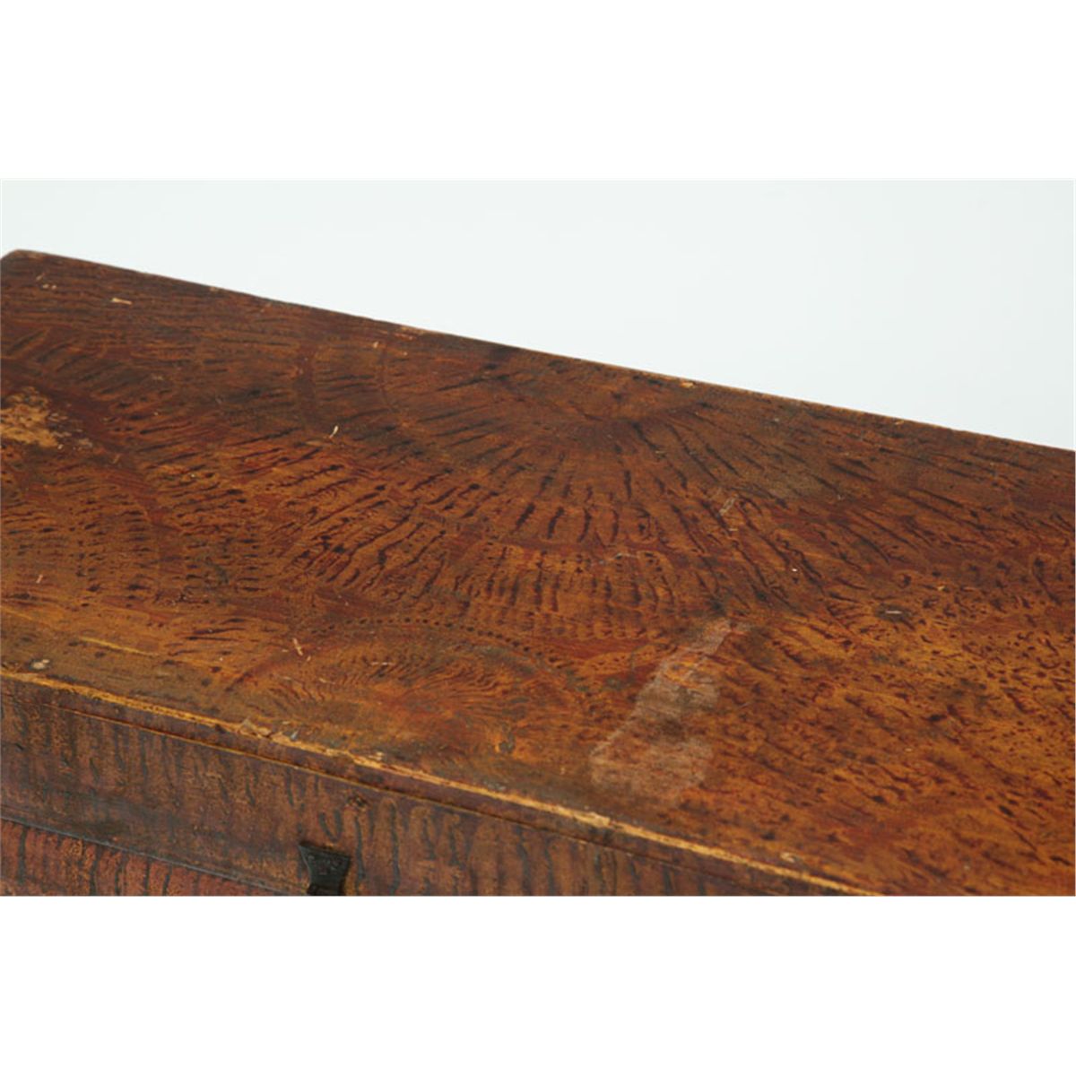 New England, 1820-1840, pine. Dovetailed box retaining its original vinegar paint decoration on front, top, sides, and back. 14"h. 30"w. 14"d. Ex Sam Forsythe (Ohio).