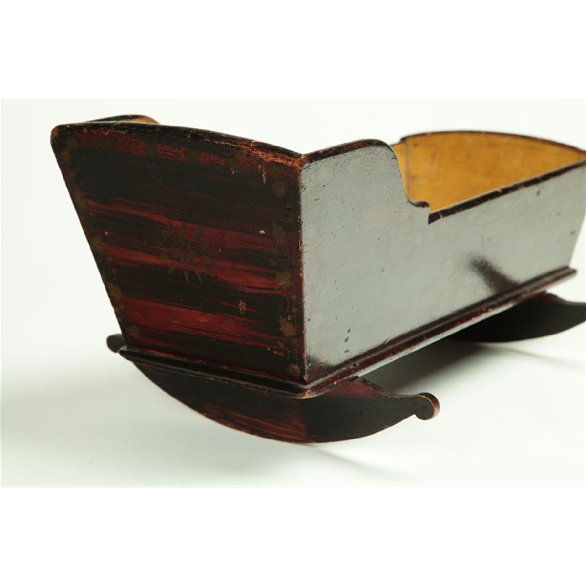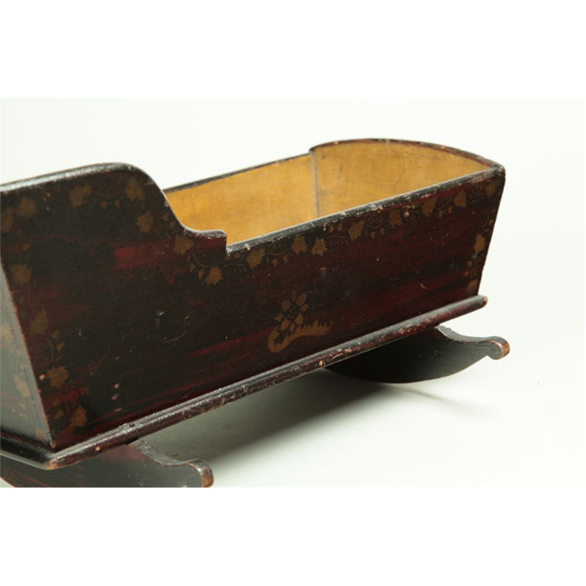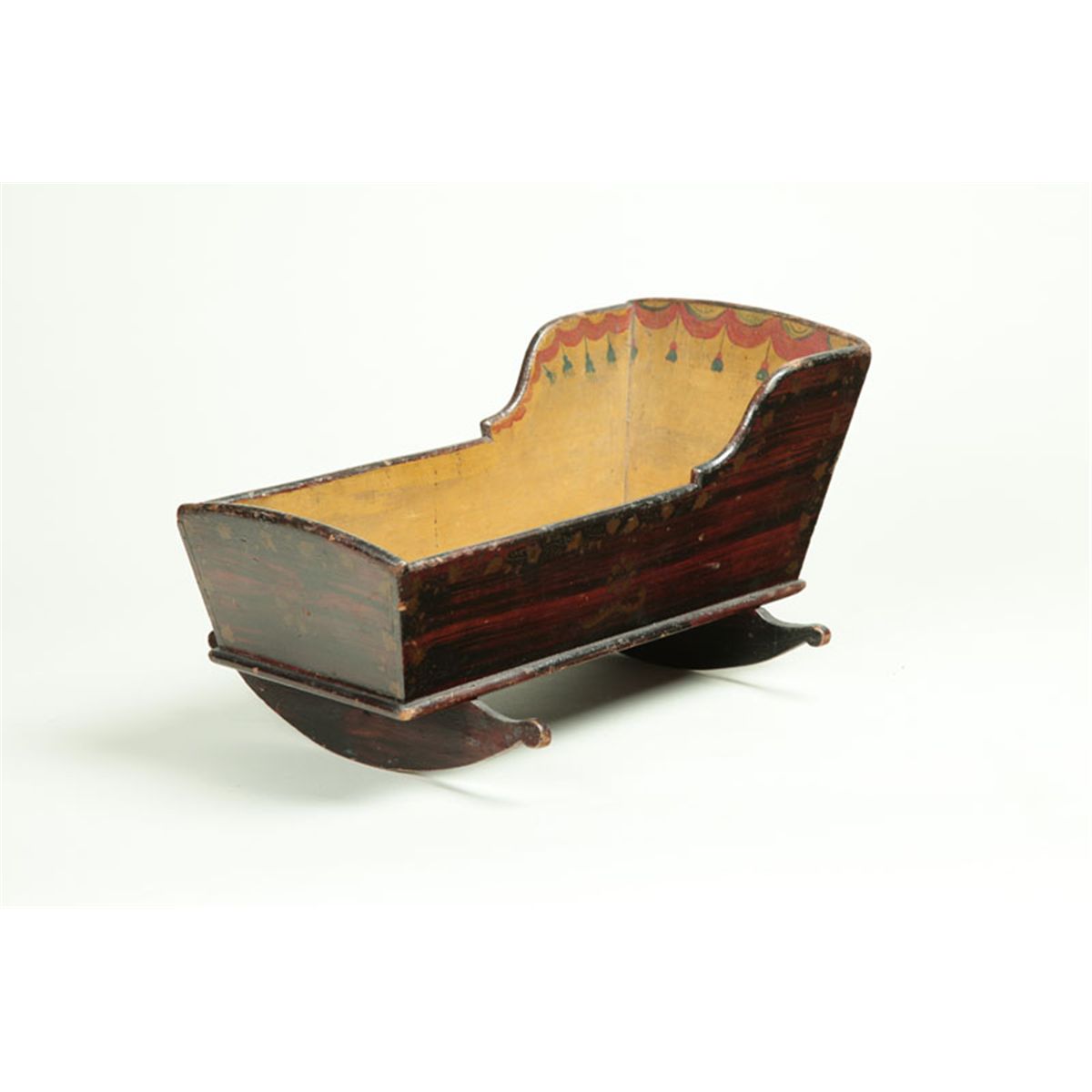 Probably New England, 1820-1850, softwood. Nailed construction and retains its original paint consisting of swags and tassels on a yellow ground inside, and gold stenciling on a faux rosewood ground on the outside. 8 3/4"h. 15 1/2"l. Sold at Cowan's Auctions (Cincinnati), May 2004, lot 1191.
