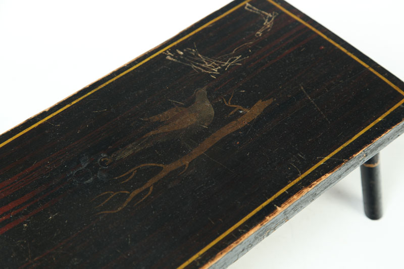 American, 19th century, pine. Original grain painting with stenciled bird on branch. Scratches. 6"h., 7" x 13".