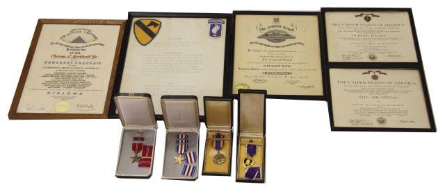 Medal and citation archive of highly decorated Vietnam veteran Lt. Colonel Cheney L. Bertholf. Collection includes Silver Star, Bronze Star, Purple Heart with certificate, Air Medal with certificate, framed unit patches, and certificates of completion for The Armored School and Combined Arms School. Very good condition
