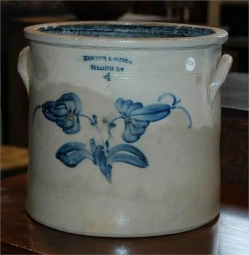 1 DECORATED STONEWARE CROCK Riedinger & Cairo 19th century, chips and 4” hairline estimate 150-250