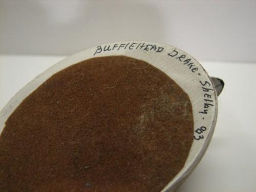 DECORATIVE BUFFLEHEAD CARVING. Signed on bottom “Bufflehead Drake/Shelby ‘83”. 4.5” L