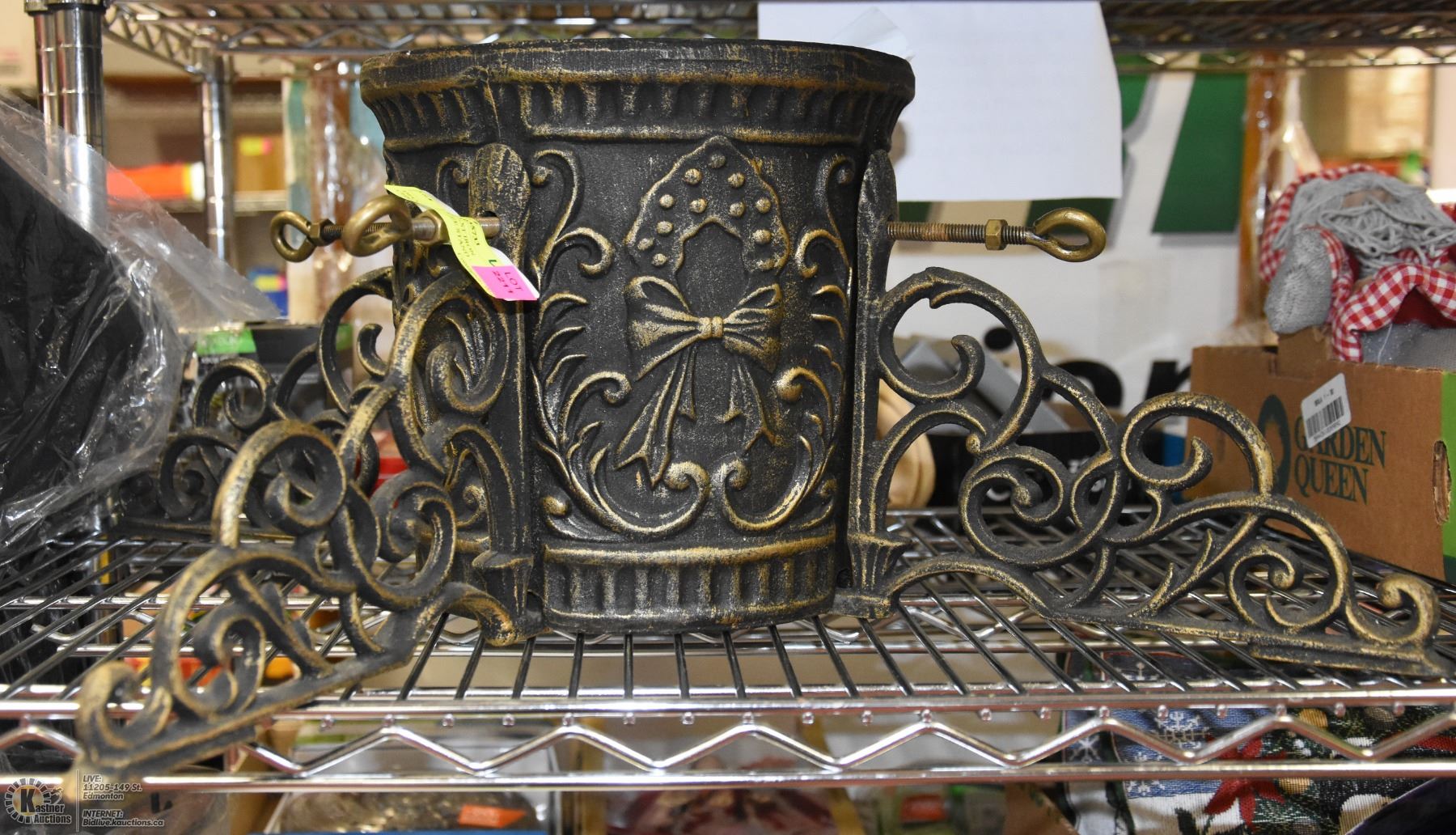 LARGE CAST IRON RESERVOIR WITH BUILT-IN BOTTOM SPIKE (9.5"-DIAM. RESERVOIR X 9.5"H) & 19"X19"-BASE - INCLUDES CHRISTMAS TREE REMOVAL BAG AND TREE SKIRT (INSIDE RESERVOIR)