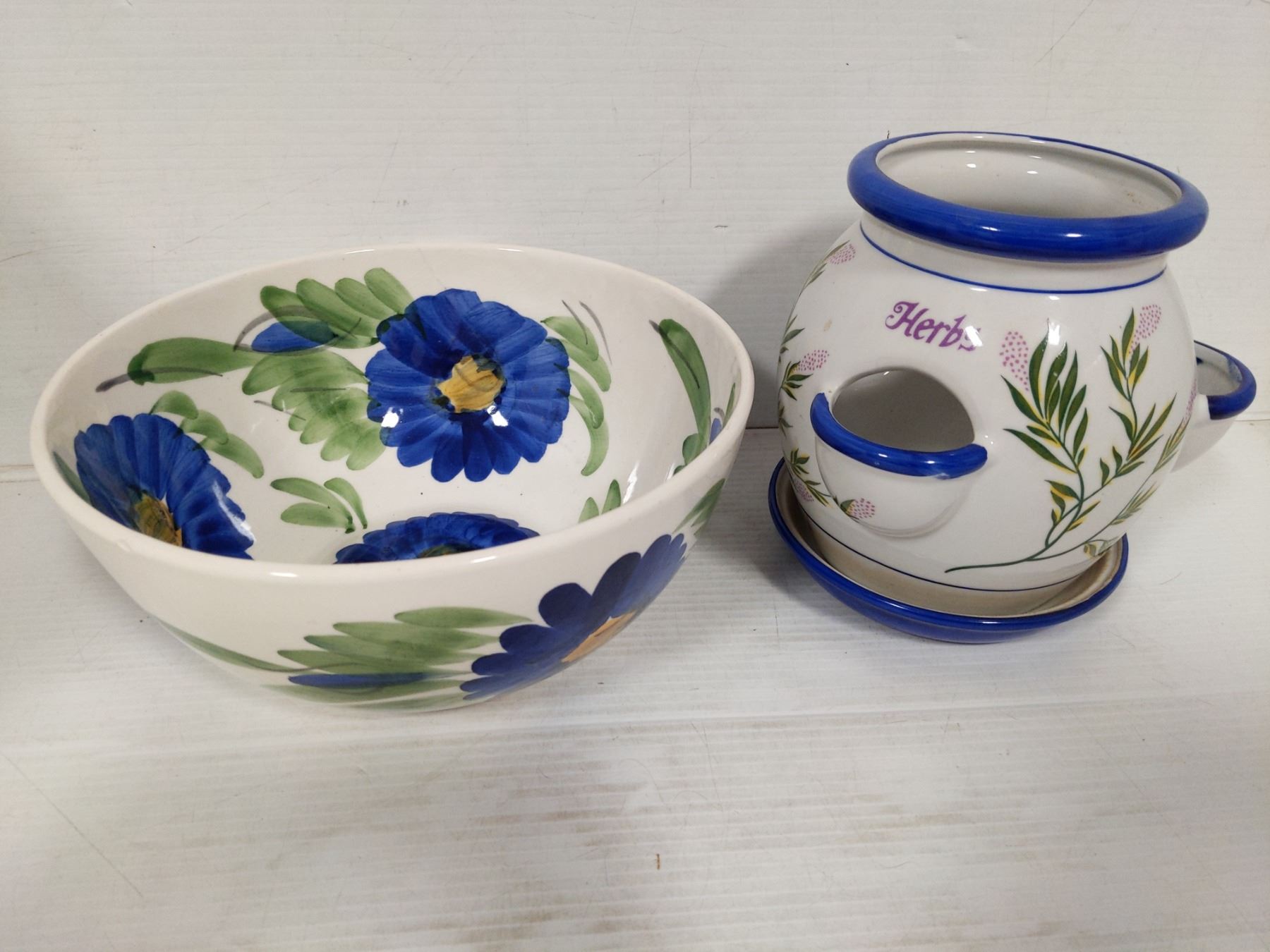 DECORATIVE CERAMIC BOWL WITH HERB PLANTER