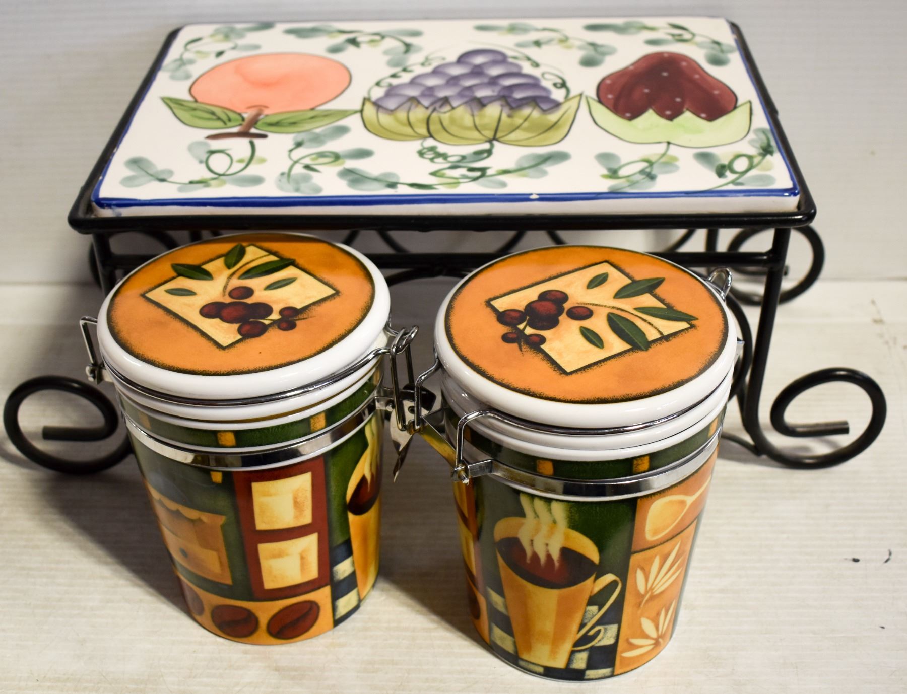 DECORATIVE CERAMIC WINE RACK + CANISTERS