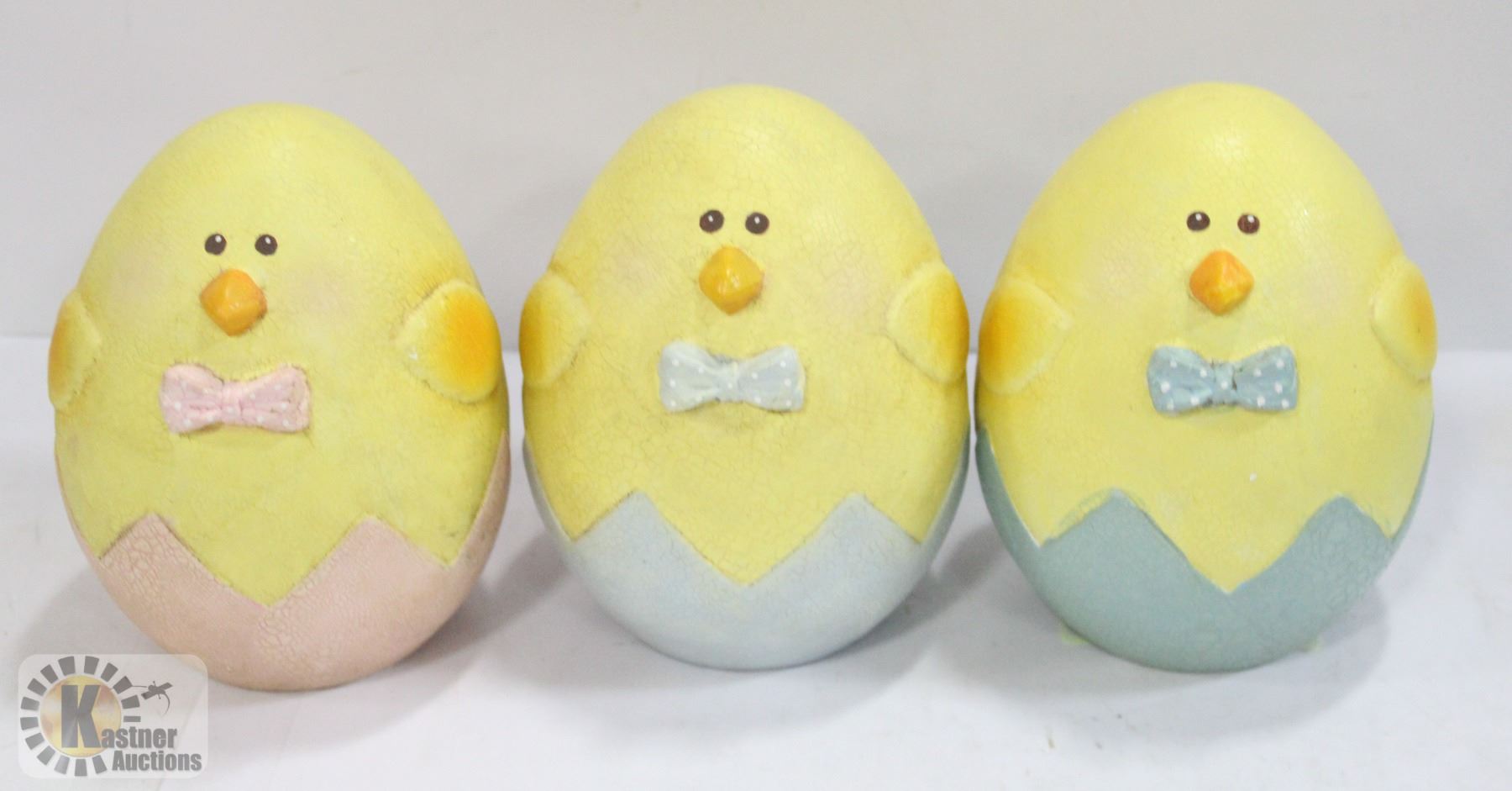 THREE NEW LITTLE CHICK EMERGING FROM EGGS DECORATIVE