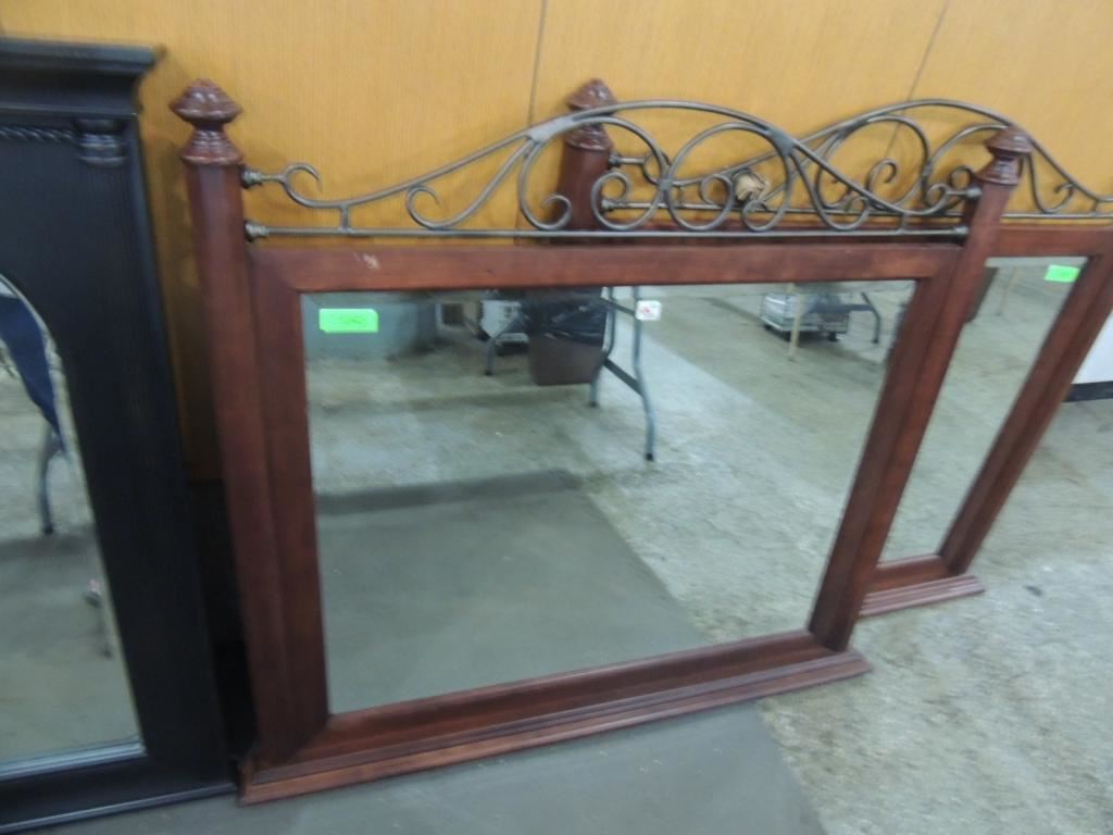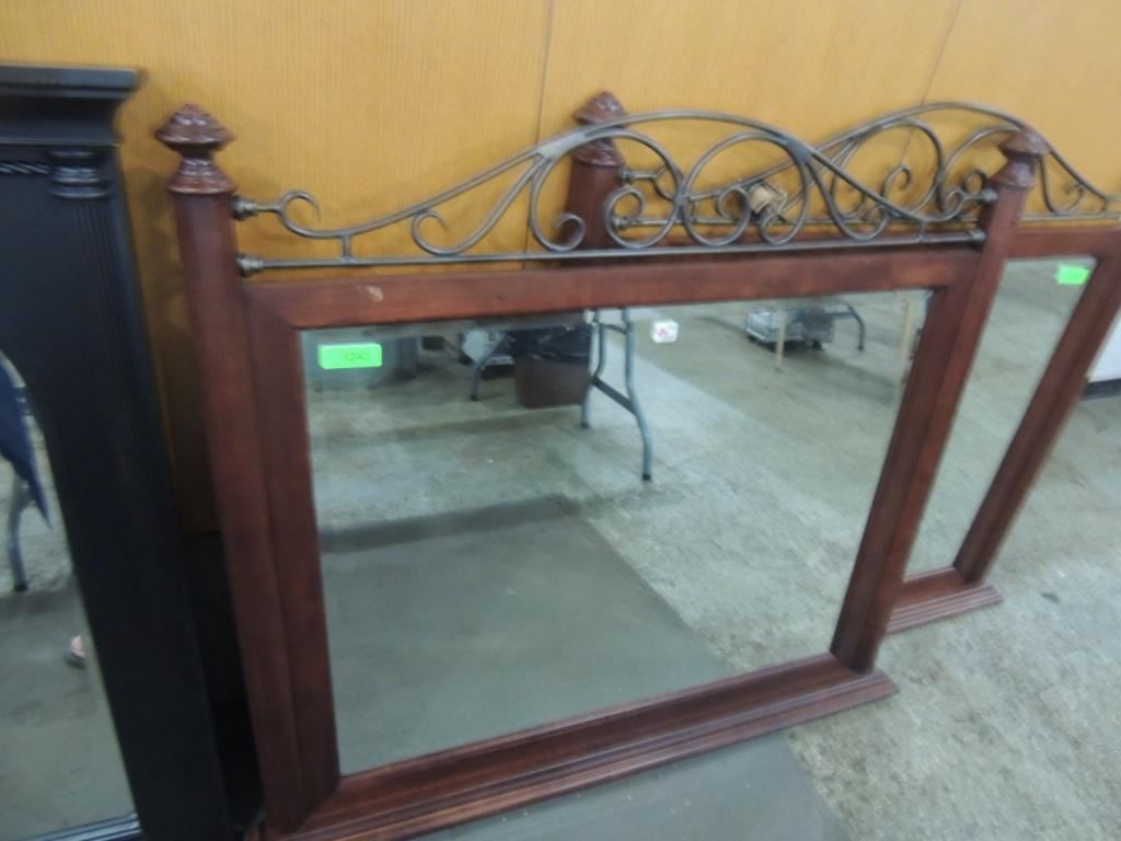 45X44 DRESSER TOP MIRROR, BEDROOM MIRROR, TRADITIONAL STYLE, CONTEMPORARY, WOODEN FRAMED MIRROR, ELEGANT MIRROR, AS SHOWN SEE PHOTO FOR MORE DETAILS.
